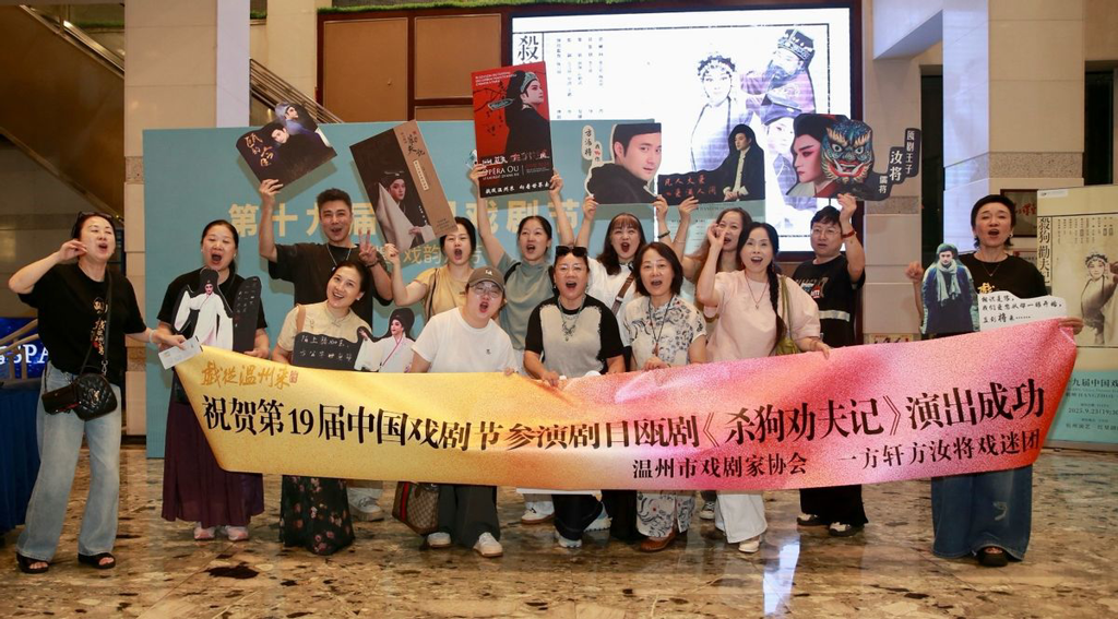从温州东南剧院的“闹热兮”家乡答谢专场到杭州红星剧院的掌声如潮,从白发老戏迷的会心喝彩到00后粉丝的应援牌,从瓯窑名家陈景炜专程赴杭捧场并送上匠心制作的瓯窑,用温州非遗来祝贺温州非遗;到戏迷“红姐”带着应援物资跨越城市支持。《杀狗劝夫记》的受热捧,印证了瓯剧的生命力。正如主演方汝将所说:“戏从温州来,应奔世界去。”此次中国戏剧节的亮相,不仅是瓯剧的一次“高光时刻”,更是南戏文化走向全国、对话世界的新起点。