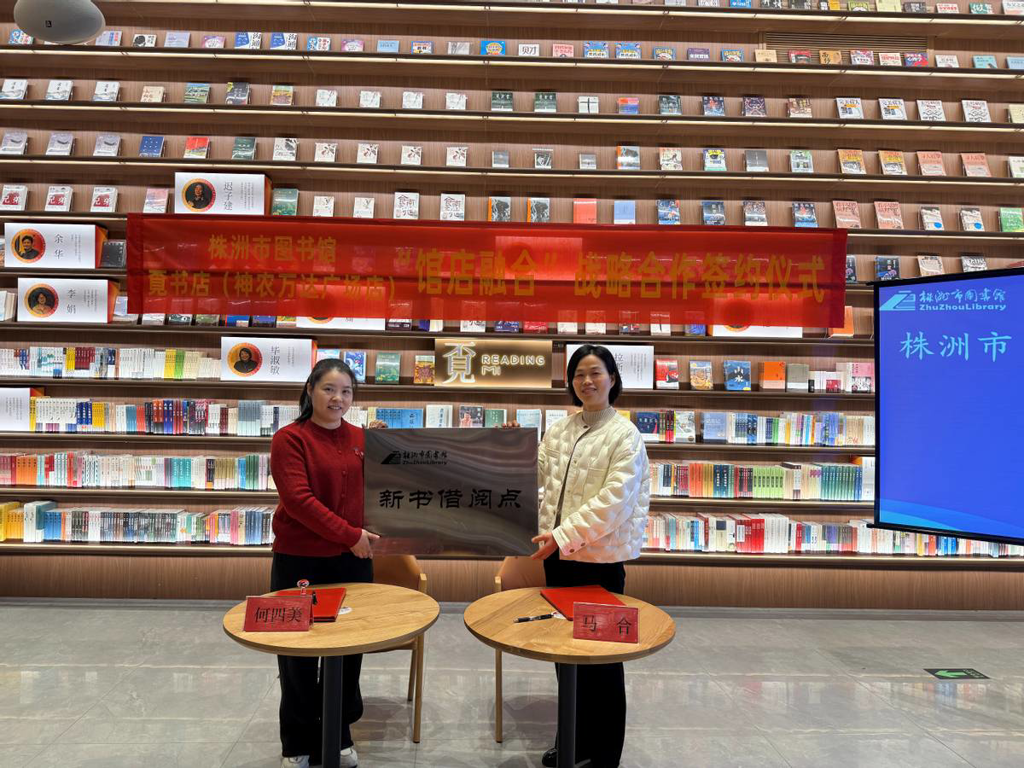 1月24日,株洲市图书馆与覔书店(株洲神农万达广场店)成功举行“馆店融合”战略合作协议签约仪式。此举标志着我市在公共文化服务与商业空间深度融合方面迈出创新一步,将为广大市民提供更便捷、更丰富、更优质的阅读服务。